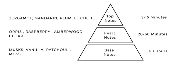 Heart notes: Orris , Raspberry , Amberwood, Cedar.